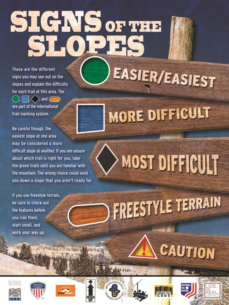 Level 2 (Novice): Learning to turn in control on gentle slopes, may use a snowplow (wedge) to stop and turn.
